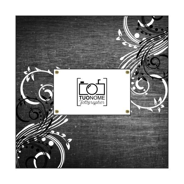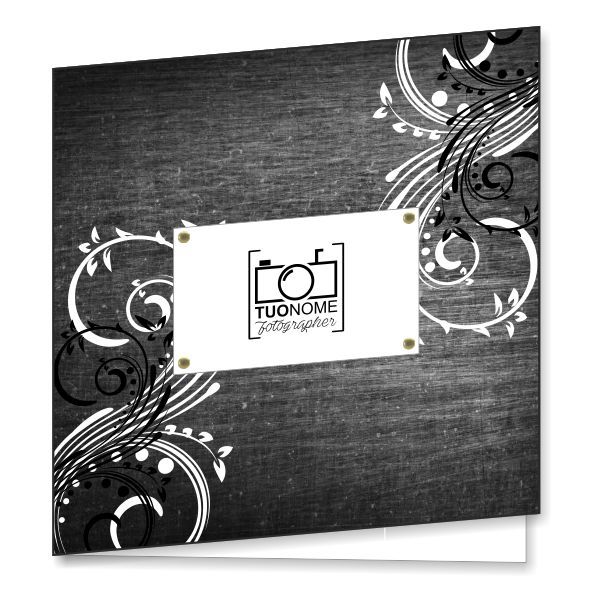 Porta foto lusso in cartoncino variabile formato quadrato con applicazione in cartoncino 800 gr stampato in letterpress applicato con fermacampioni ottone e logo personalizzabile.