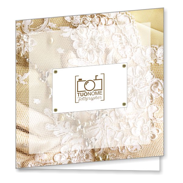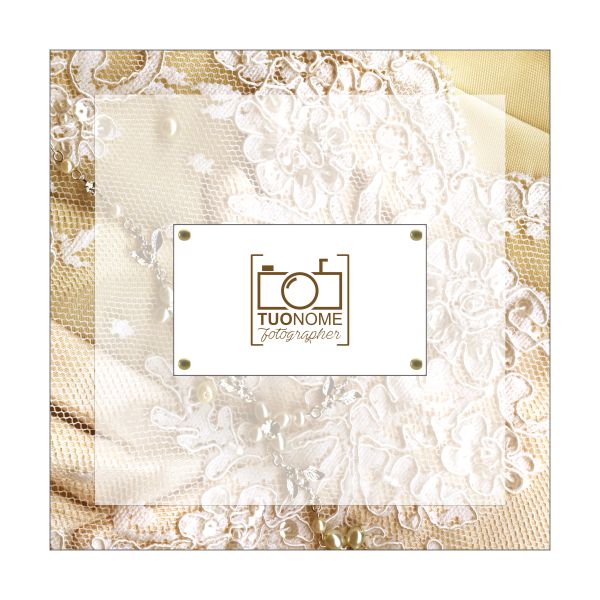 Porta foto lusso in cartoncino variabile formato quadrato con applicazione in cartoncino 800 gr stampato in letterpress applicato con fermacampioni ottone e logo personalizzabile.