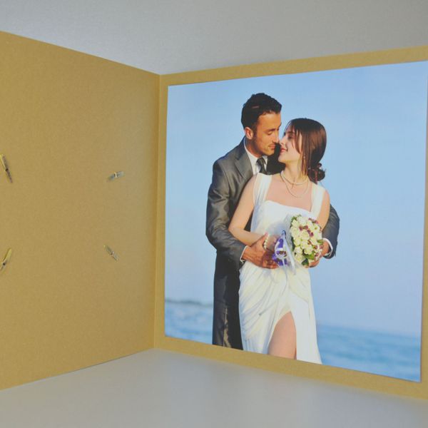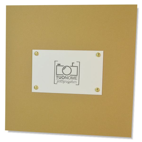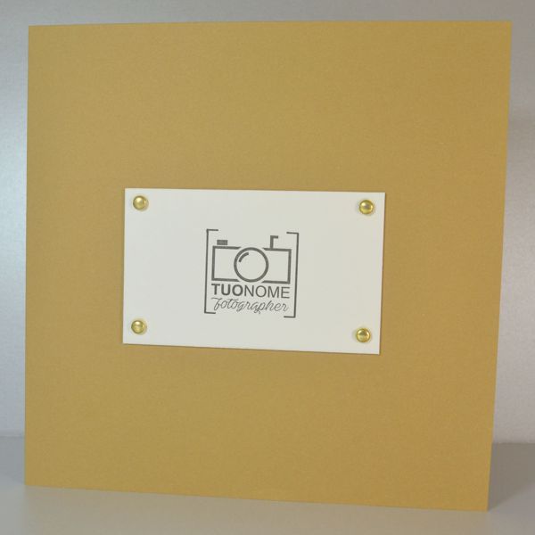 Porta foto lusso in cartoncino variabile formato quadrato con applicazione in cartoncino 800 gr stampato in letterpress applicato con fermacampioni ottone